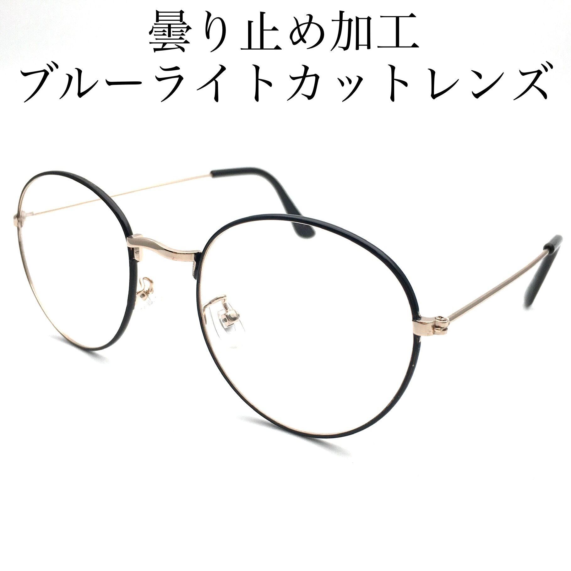 曇り止め加工、ブルーライト、紫外線カットレンズ使用 クラシックメタルラウンドダテメガネ【4カラー展開】ブラック ブラウン グレージュ ベージュ